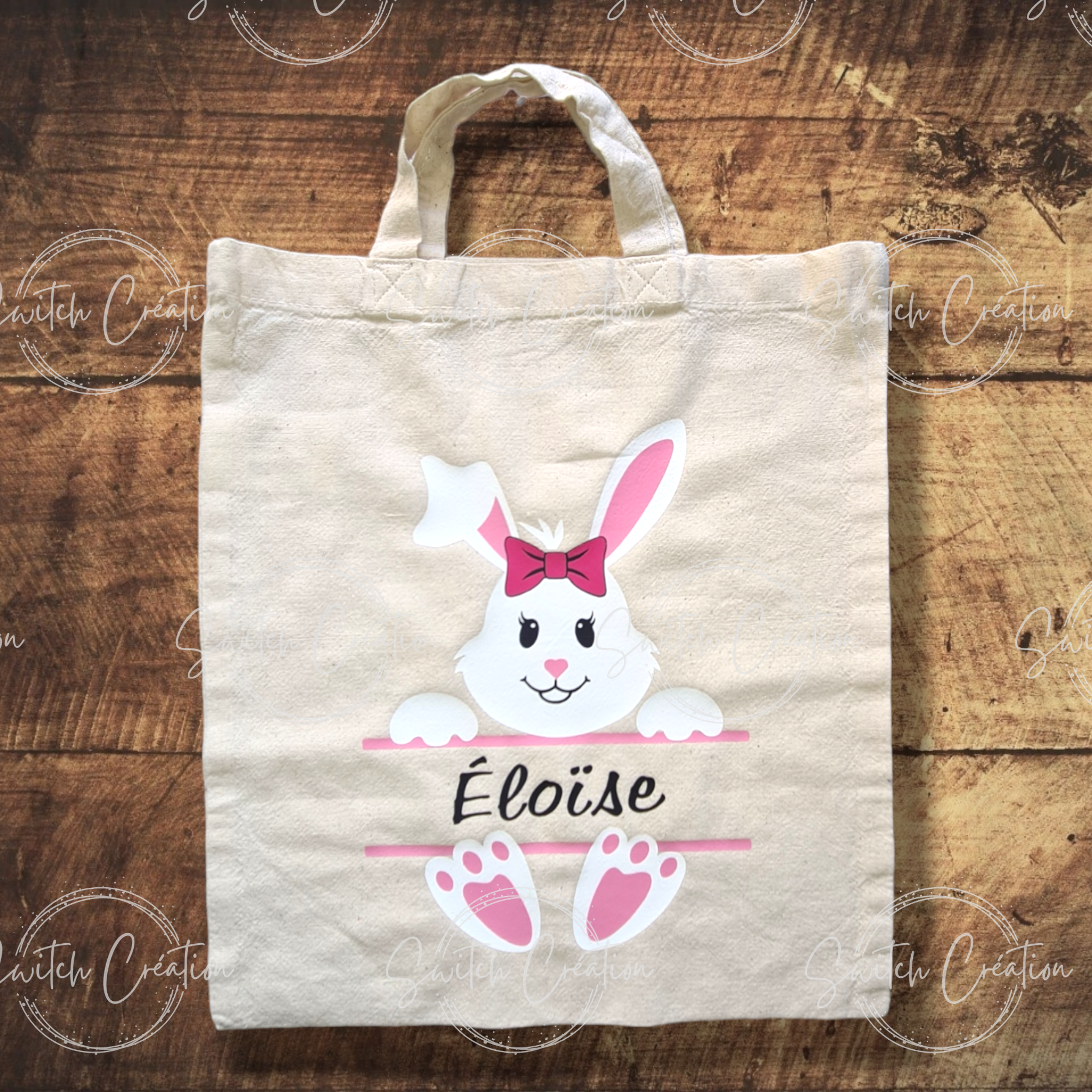 Sac en toile Lapin de Pâques Personnalisable « Rose »